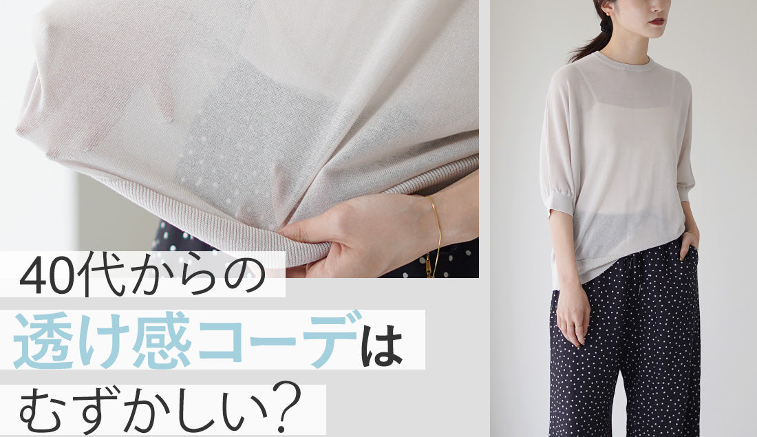 今回は40代以降の女性が透け感コーデに挑戦する時の4つのお悩みと、その解消方法をご紹介!