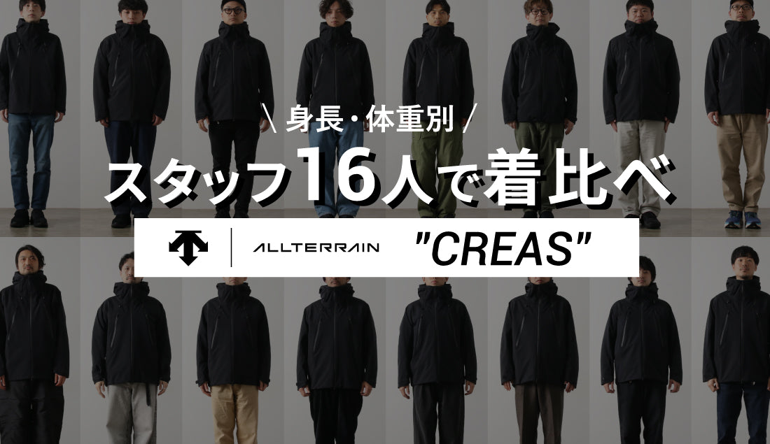 そこで今回は、クレアスの最新2026年モデルを、ROCOCO男性スタッフ全員に試着してもらい、サイズ感を比較してみました!スタッフの身長や体重、普段の着こなしに基づいたサイズ選びなど、ぜひ参考にしてみてくださいね。