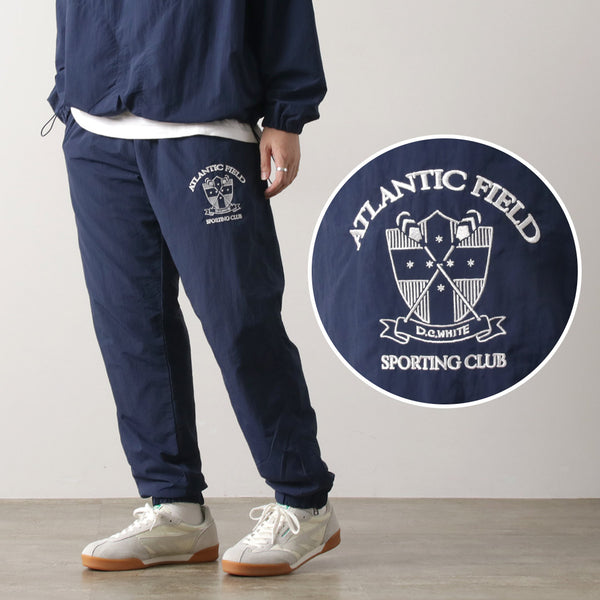 このレーベル名には、「ATLANTIC(大西洋)」と「FIELD(フィールドスポーツ)」の要素が含まれており、アメリカ東海岸で発祥したアイビープレッピースタイルと、マリンスポーツやフィールドスポーツの着想を反映しています。例えば、ナイロン素材のトレーニングトップやトレーニングパンツは、スポーティでありながらも、紺ブレザーやボタンダウンシャツと合わせても違和感のないデザインが特徴です。