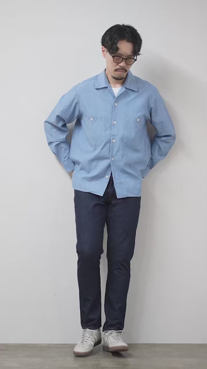 一般的なデニムが12〜14オンスであるのに対し、本作は約3分の2の軽さとなる8オンスのセルヴィッチデニムを採用。真夏でも快適に穿ける軽やかさを実現しながら、旧式力織機で織り上げた生地ならではのしっかりとしたコシと、本格的なデニムの表情を兼ね備えています。