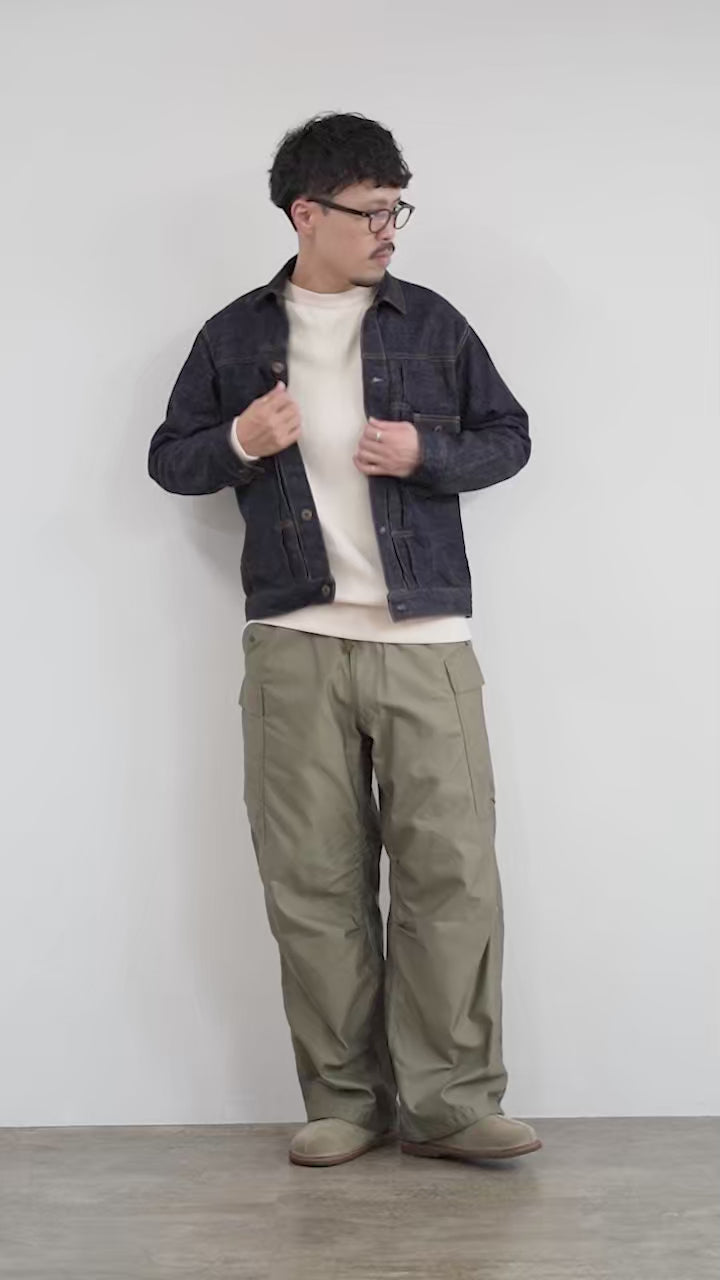 ヴィンテージ感を意識して約1インチ (2.5cm)広めに設定された身幅と、やや長めに設定された身幅によって、様々なアイテムと合わせやすいバランスの取れたシルエットに。