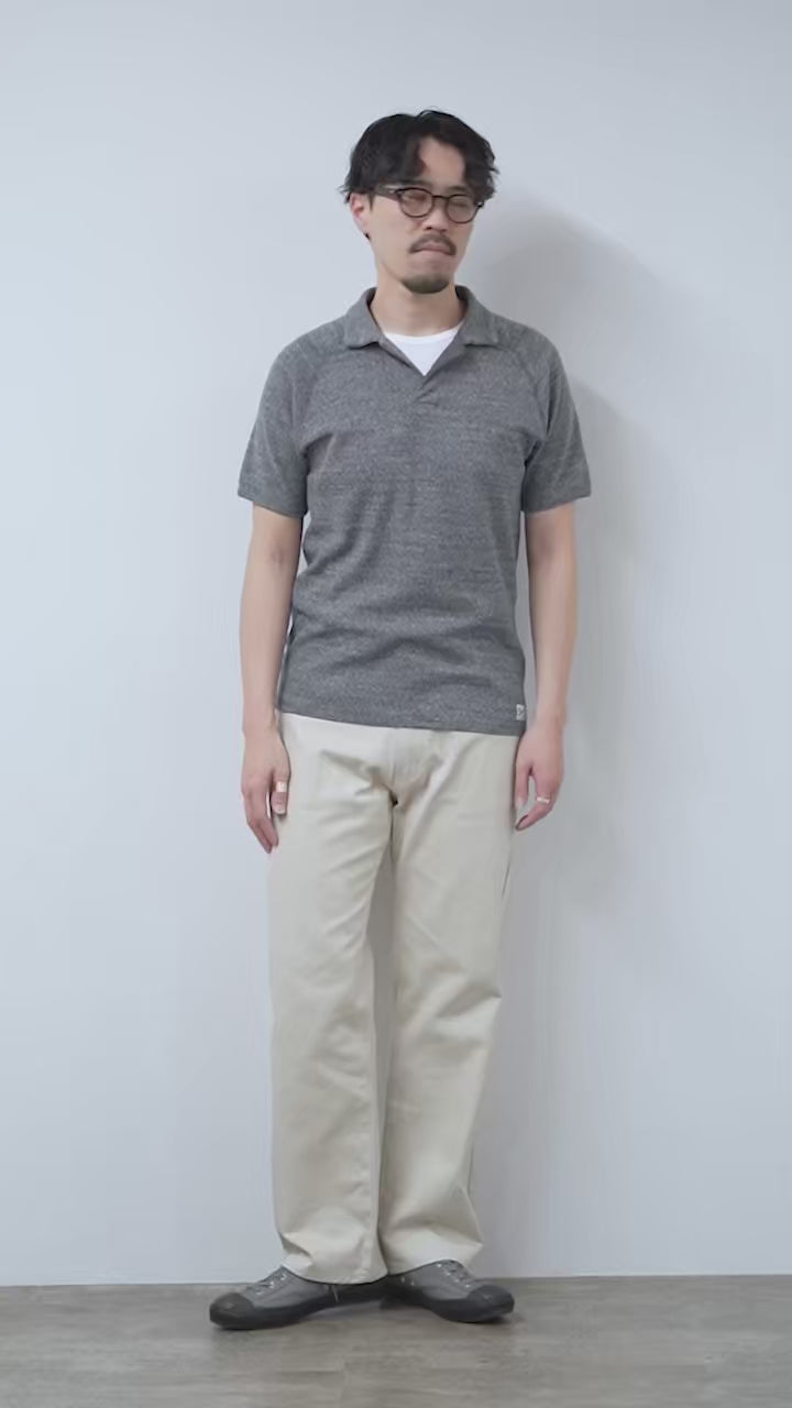 首元はボタンなしのミニマルなスキッパー仕様で、爽やかで落ち着いた大人の雰囲気を演出。