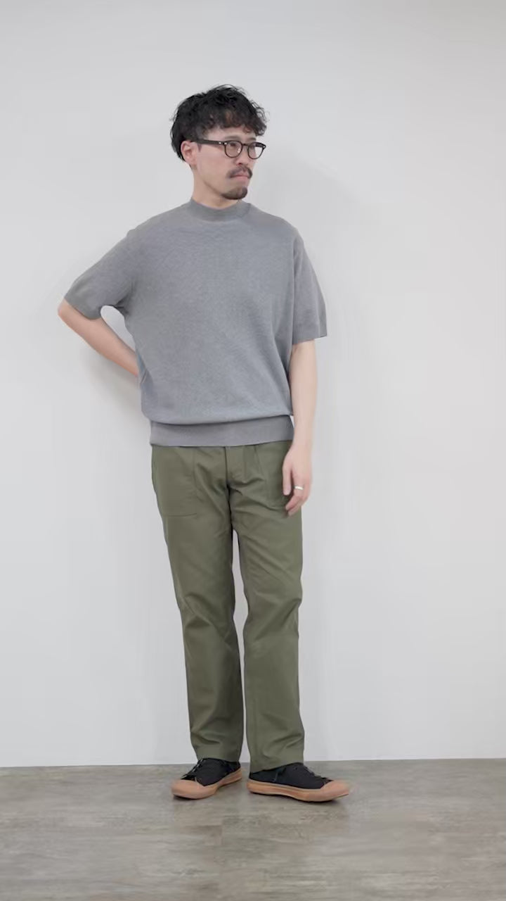 GICIPIのCalamaroモックネックニットソーがリニューアルして登場!従来のオーバーサイズから、ジャストフィットなシルエットに進化しました。特に袖丈は肘にかかる長さからひじ上程度に短縮され、すっきりとした印象に。着こなしがさらに洗練され、着回し力も格段にアップしています。