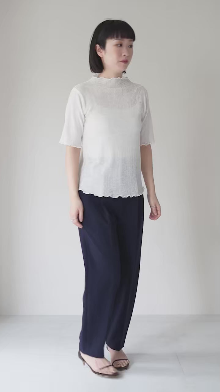 程よくフィットするコンパクトなシルエット。透け感のある生地が、上品ながらも軽やかな印象を演出します。