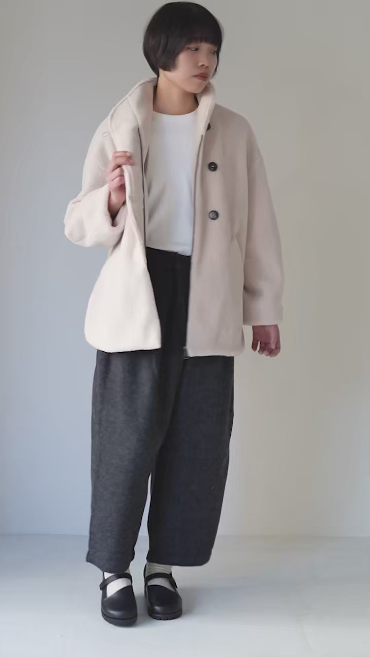 ファンネルネックや大きめボタンなどの遊び心あるディテールがほんのり甘さをプラスしつつ、全体は上品にまとまる「ちょうどいい大人可愛さ」を実現。デイリーから週末のお出かけまで幅広く活躍し、冬の主役アウターとして長く愛用したくなる一着です。