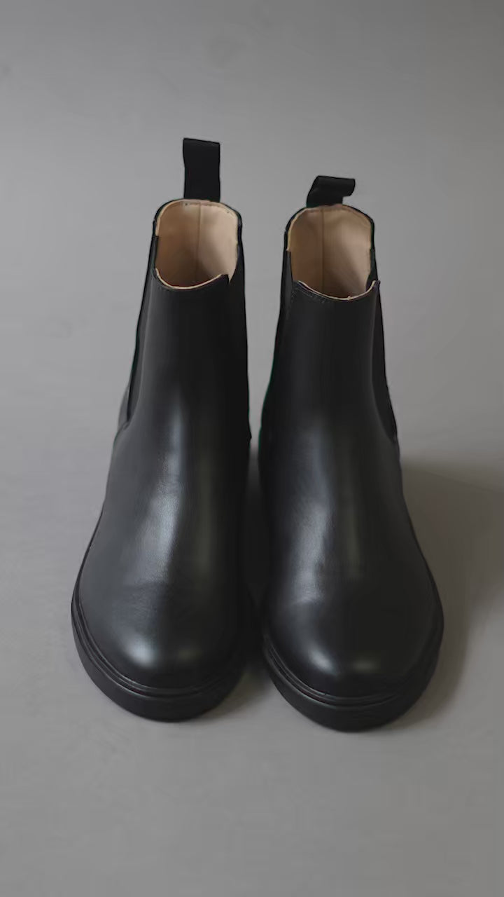 英国のオーセンティックなチェルシーブーツのデザインを踏襲。履き口からアッパーに至る美しい曲線と、すっきりとしたヒールカップがクラシカルな雰囲気を高めます。