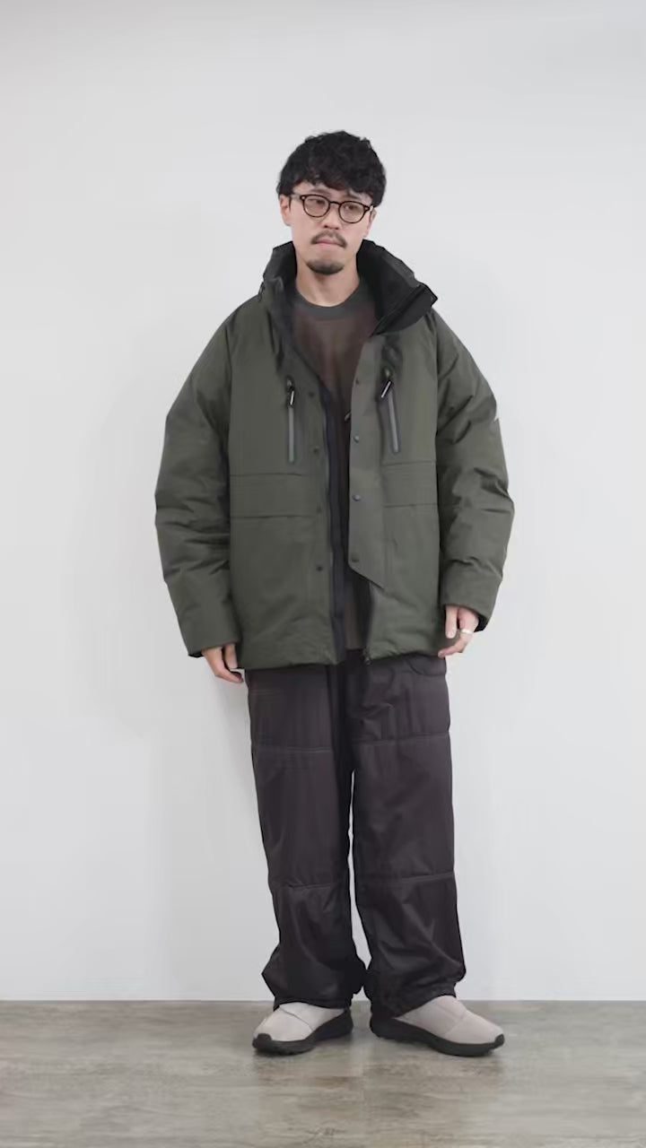 中綿は河田フェザー社が国内で丁寧に洗浄した750フィルパワーダウン。暖かさはもちろん、軽量性・フィット感も秀逸。冬場のアウトドアや街使い、両方に応える素材選びと設計です。