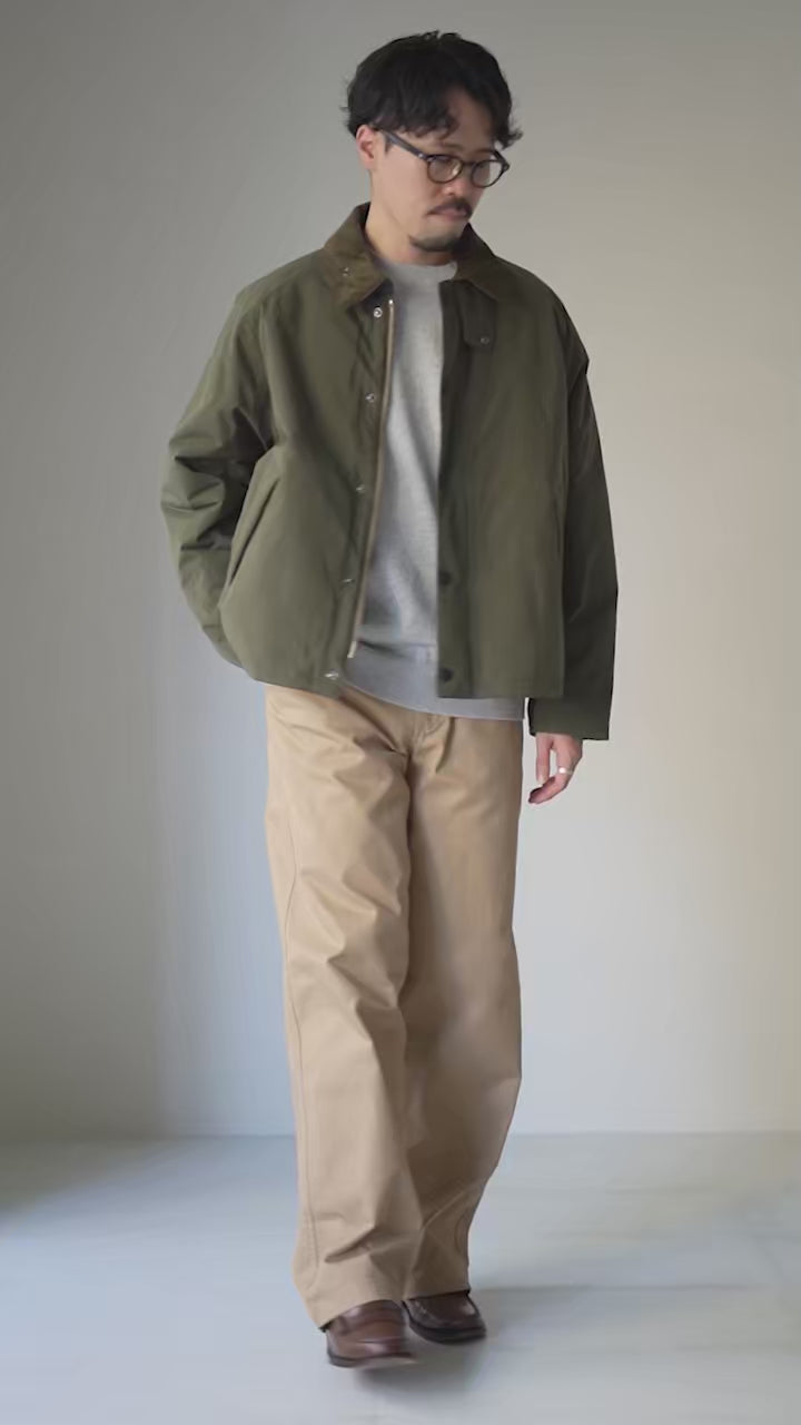 ルーズに、ゆったりと着用できるサイズ感です。短めの着丈と広めの身幅が相まって、非常にモダンなシルエットを構築します。アウターとして中にニットや厚手のインナーを着込んでも動きやすいです。インナーを調整すれば3シーズン活躍しそうです。