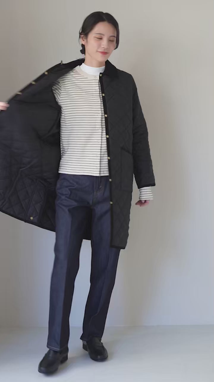 ふんわりと広がる裾がどこか優しげな印象を与えてくれる一着。毎日の通勤にもお出かけにも使えて、もちろん温かさもしっかり確保。そしてくだけすぎない大人カジュアルを求める方にぴったりのキルティングコートです。