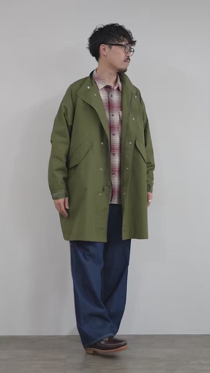 「現代ファッションに落とし込みやすい好バランス」という理由から、ここ数年でアウターの定番になったM-65フィッシュテールパーカーのワイドシルエットを踏襲。