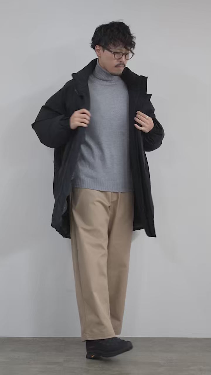 中綿には高機能リサイクル羽毛「KAWADA DOWN」を用い、700FP相当の高い保温力と環境配慮を両立。フードは襟に収納可能で、重ね着も楽にこなす万能ダウンです。