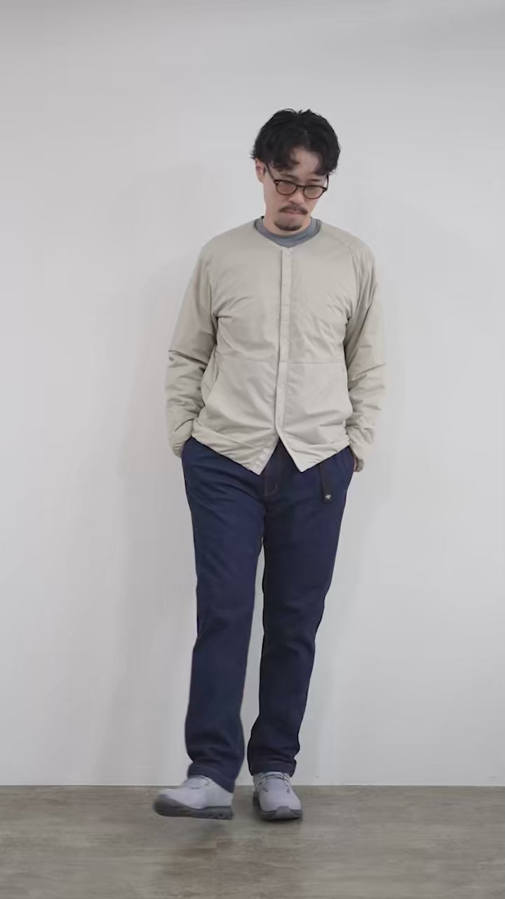 ウエストにゆとりがあり、楽に穿けるサイズ感です。わたり幅が広いため、ガッチリ体型でも太腿が張らず、ストンと綺麗なテーパードラインが出ます。WINDSTOPPERによる防風性が非常に高く、これ一枚で真冬の寒さもシャットアウトしてくれる頼れる一本です。