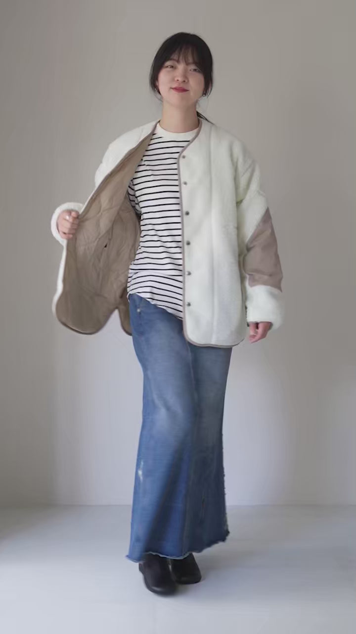 表面は表情豊かなフリース、裏面はミニマルで洗練されたダウン。“その日の気分”と“コーデのバランス”で表裏を自由に切り替えられる、着回し力抜群の1枚です。