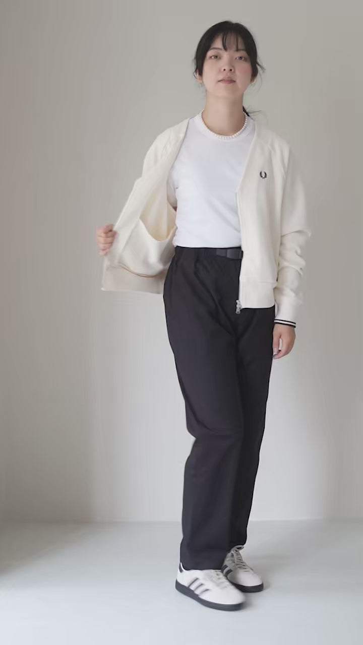 身幅にはゆとりがあり、着丈はヒップにかかるくらいですっきり着用できます。ショート丈なのでハイウエストのボトムと相性が良さそうです。