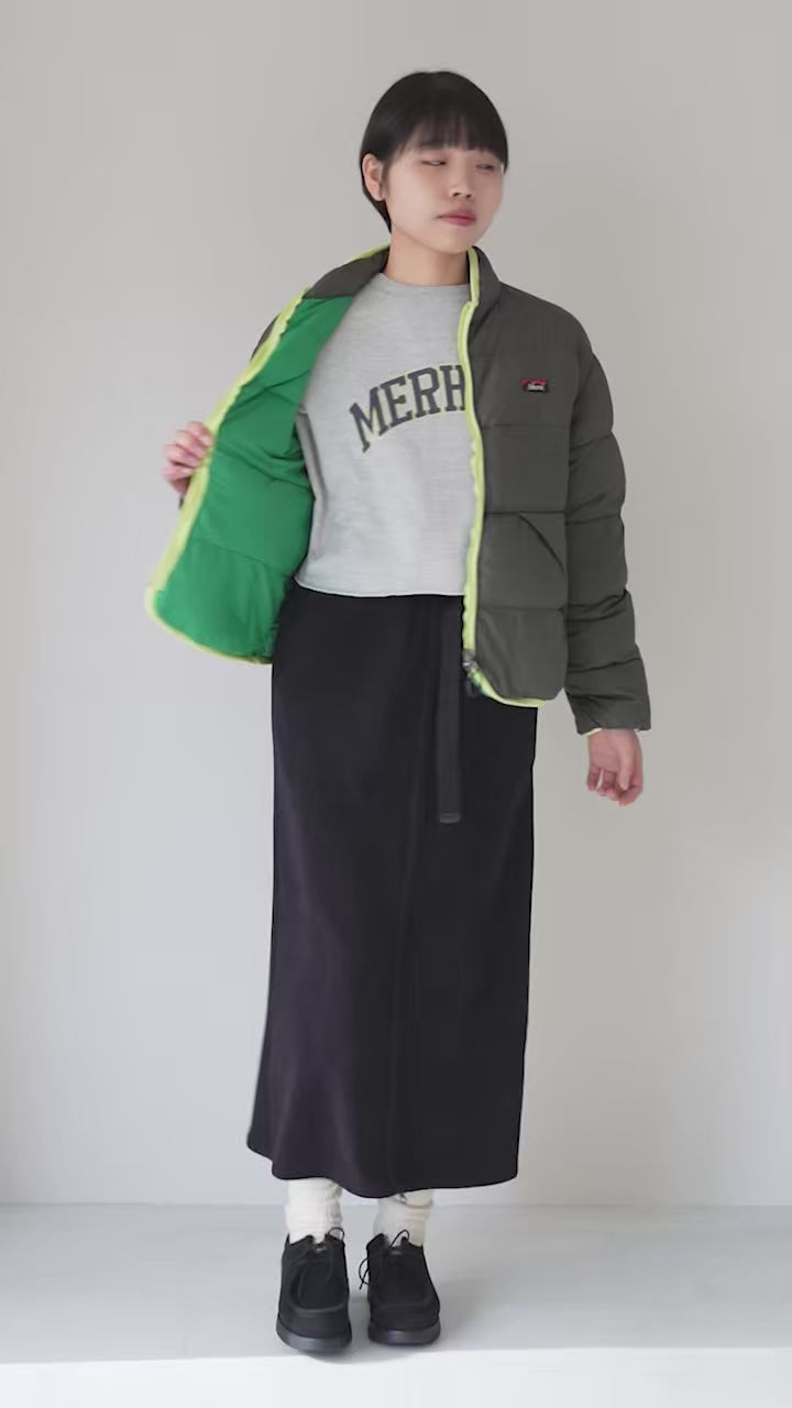 | 素材 | 表地:ナイロン100% 裏地:ナイロン100% 中綿: (本体)ダウン80%、フェザー20% (ポケットフラップ)ポリエステル100% |