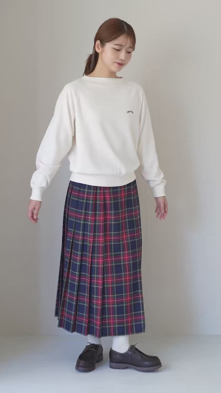 スウェットには珍しいボートネック。開きすぎない上品なデザインで、すっきりとした印象を演出します。