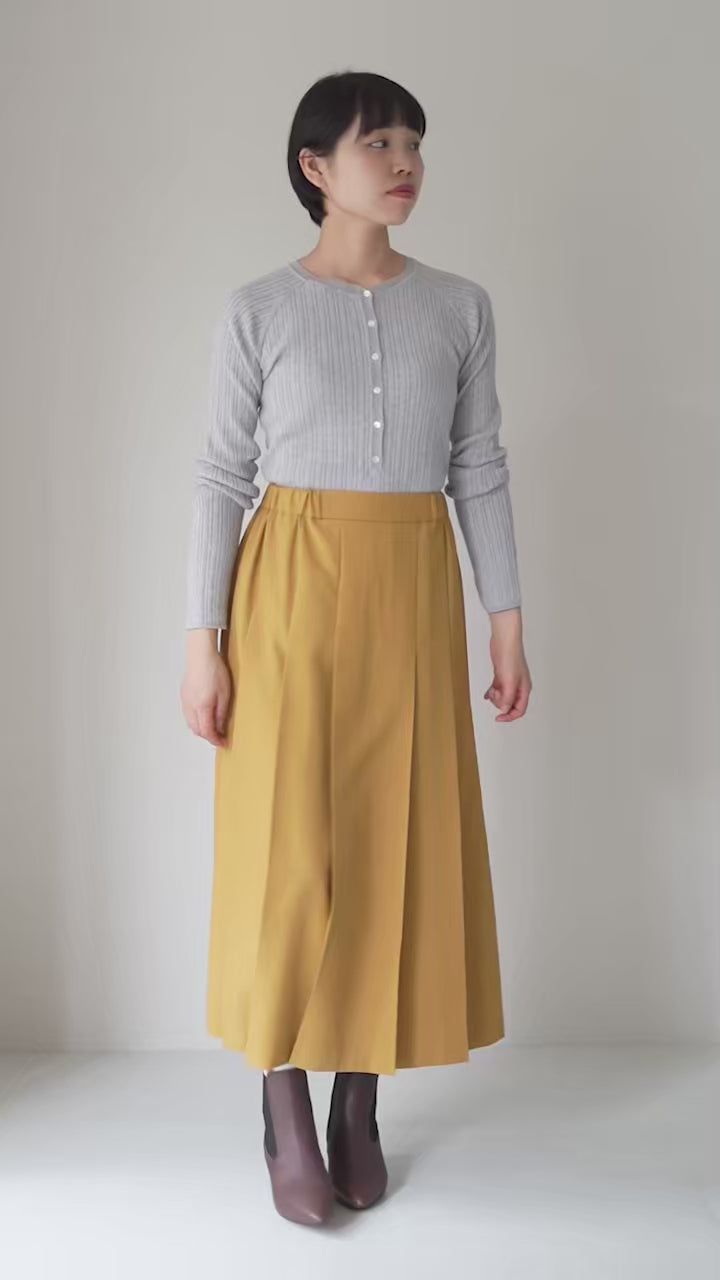 伸縮性に富んだリブ編みが身体のラインに優しくフィットし、動きやすさをキープ。締めつけることなく、自然に体を包み込むようなシルエットでエレガントさを演出します。
