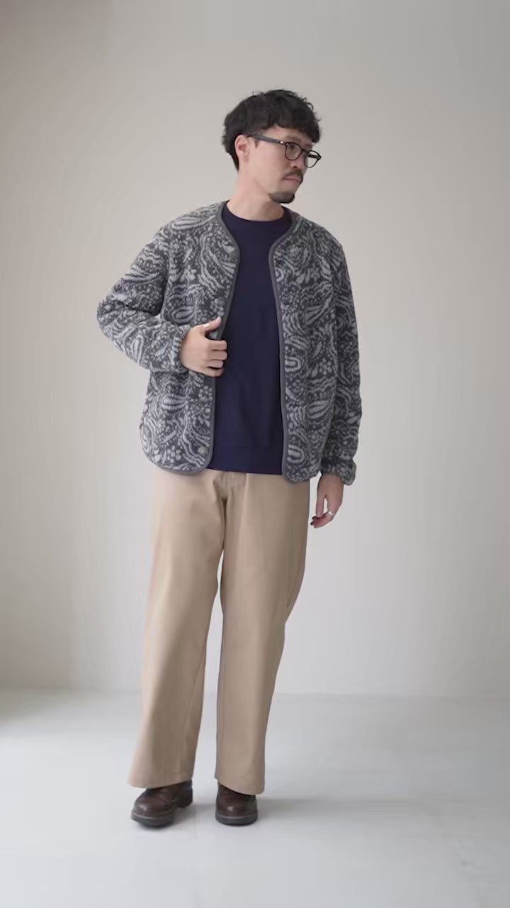 アウトドアのイメージが強いボア素材ですが、大人が着やすい落ち着いたペイズリー柄と、シンプルなポリエステル面の2WAYデザインで、街でも自然に映える一着。タウンユースにもアクティブシーンにも幅広く活躍します。