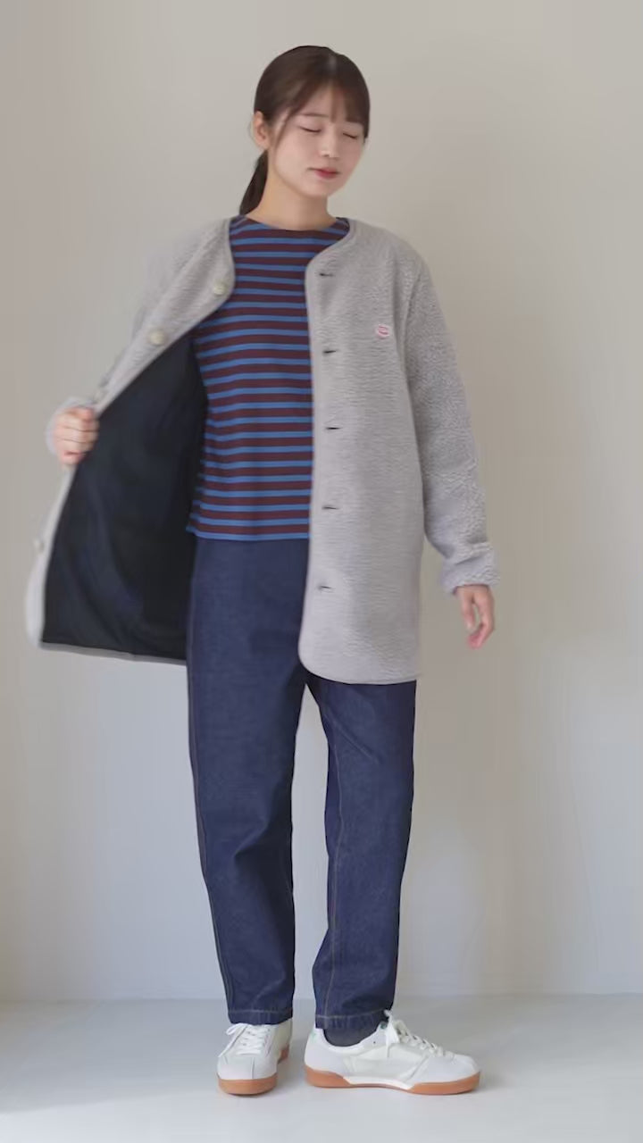 首元はコンパクトな開きのノーカラー。ボアのボリュームに抜け感をプラスし、絶妙なバランスに。どんなコーデにも取り入れやすく、幅広いスタイリングで活躍します。