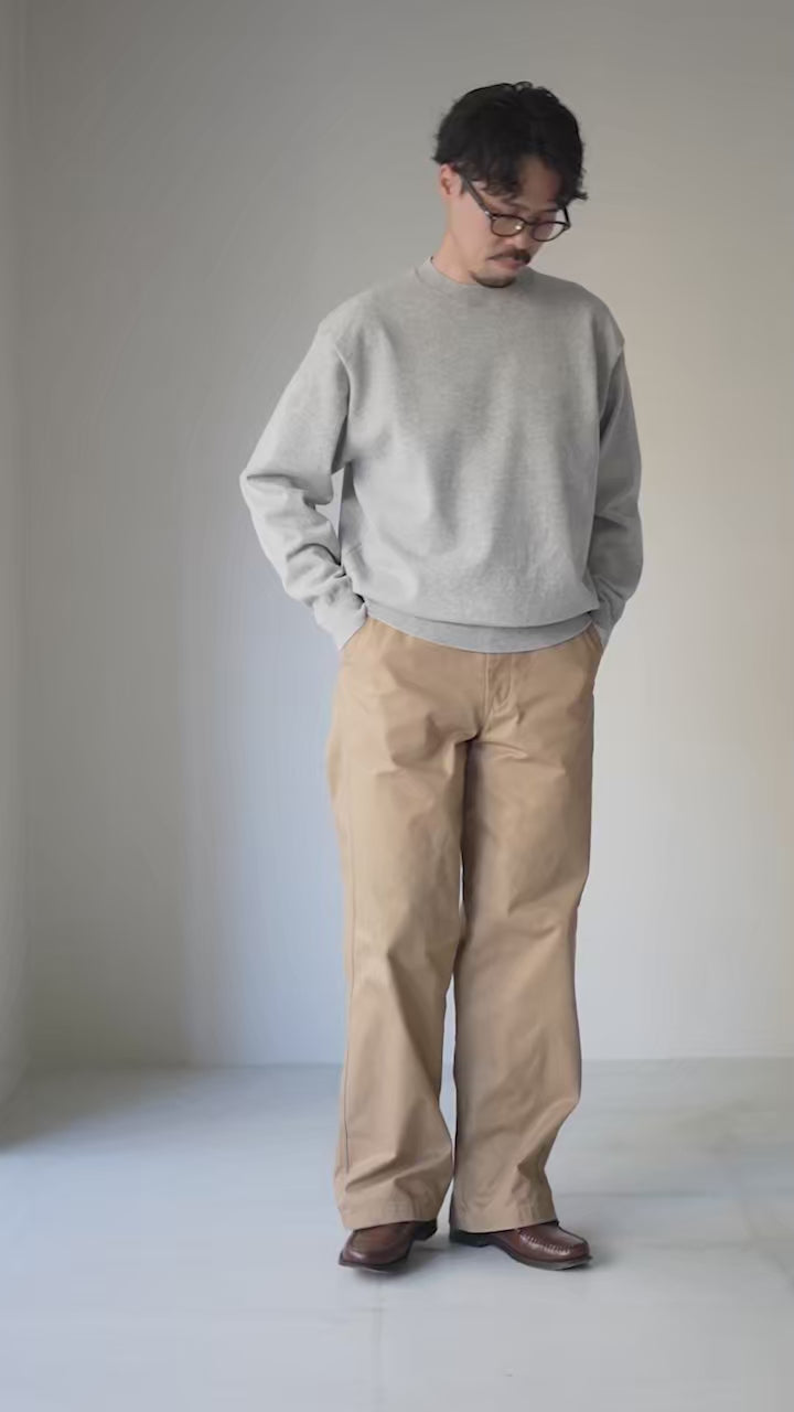ゆとりはあるのにだらしなく見えない絶妙バランスで、きれいめにもカジュアルにも振れるシルエットです。