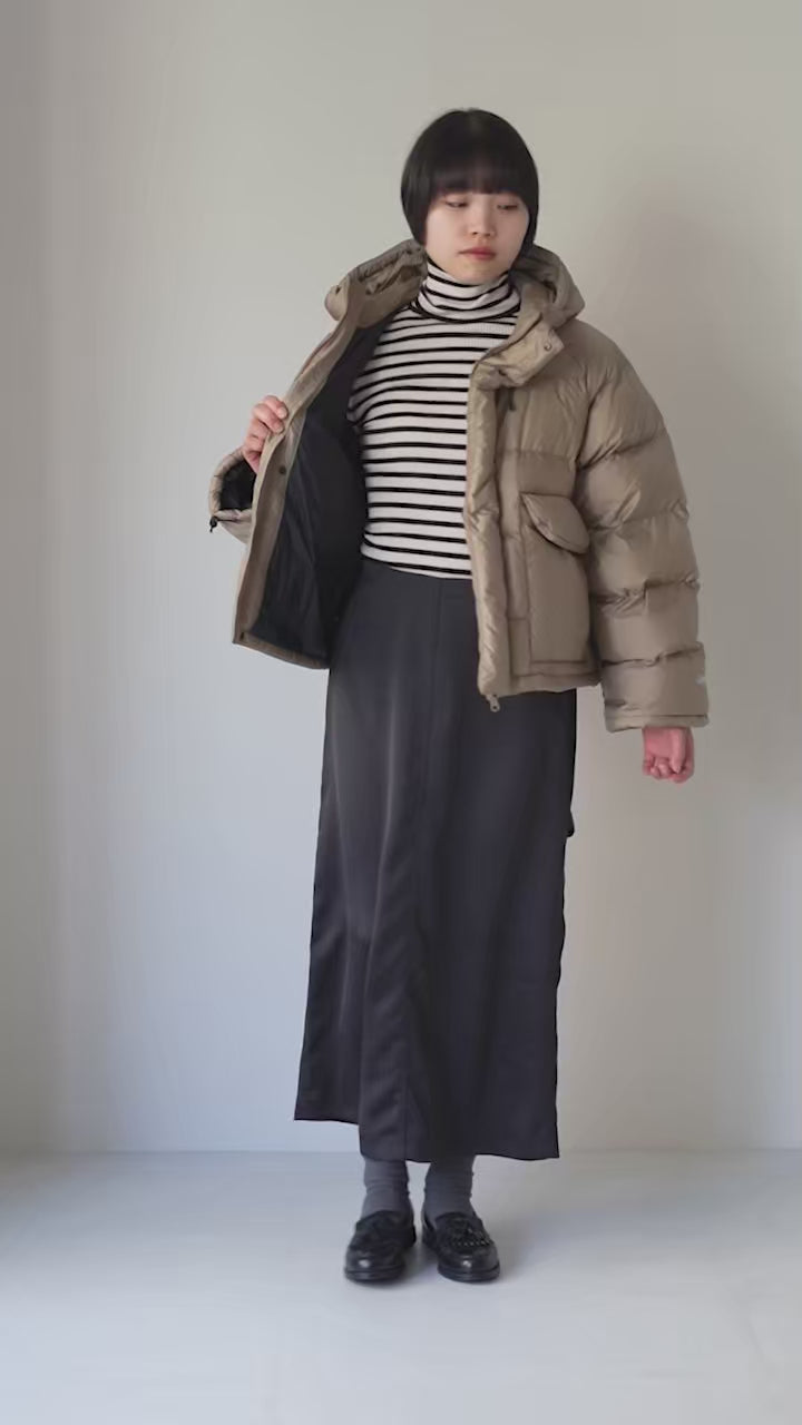 表地のナイロンタフタ地が、まるでコットンのような自然な風合いを演出。寒い冬をしのぐ機能性がありながらも、大人の落ち着きを感じさせるナチュラルテイストな一着に仕上がっています。