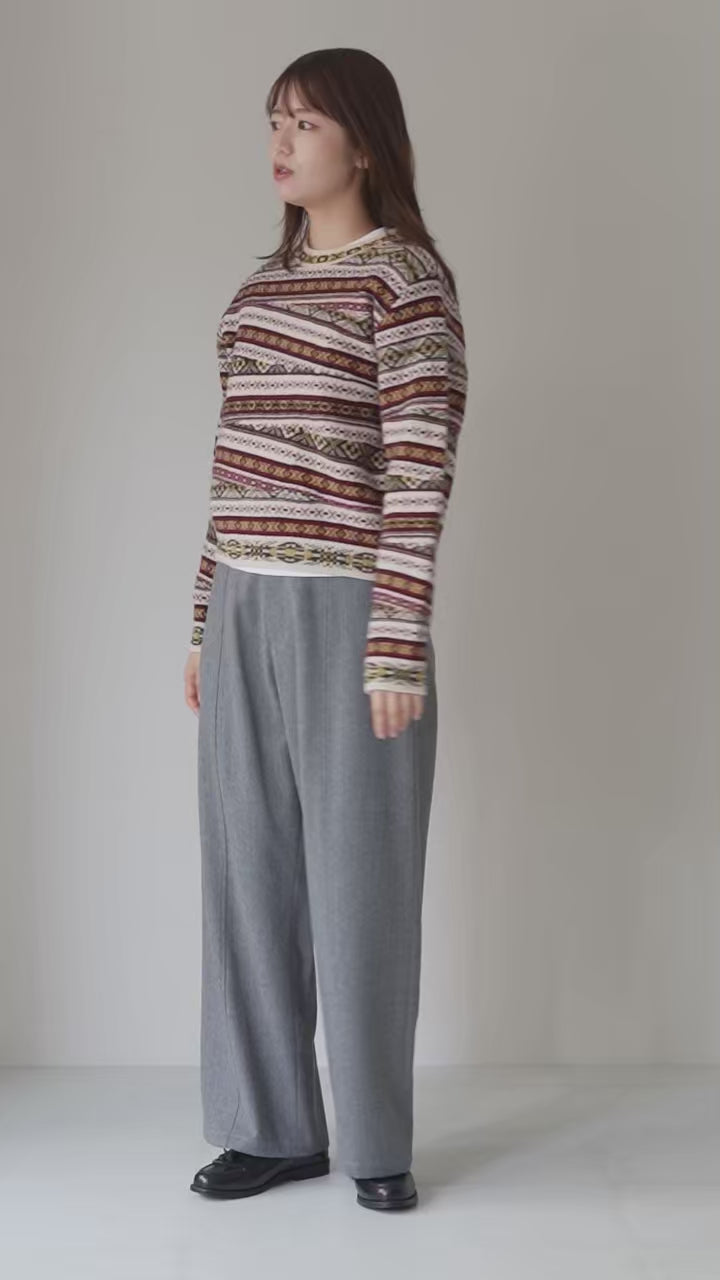 ウエストはバックゴムで一日中ラクなのに、見た目はすっきり上品。カジュアルにもきれいめにも合わせやすく、季節のワードローブに一本あると心強いアイテムです。