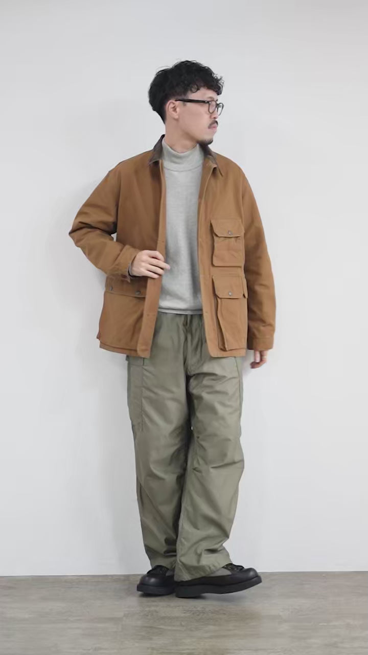 ジャケットはショート丈&ボックスシルエット。身幅にゆとりを持たせた設計で、インナーの重ね着やデニム合わせも難なくこなす。武骨さだけじゃなく、洗練感も抜群。街でも野外でも、確実にフィットするひと品です。