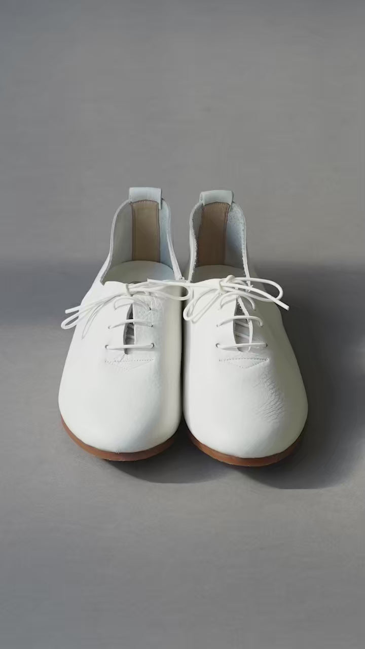 くったりとした柔らかな本革に無駄のないシンプルなデザイン。リピーターの多いレースアップシューズのデザイン違いで、こちらも靴選びに悩む女性にお役立ちの予感です。