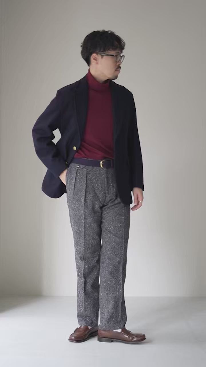 太く張りのある英国羊毛を用いたホームスパンは、ツイード特有のザラつきとコシの強さが魅力。糸の表面に現れる豊かなネップは、まるで田園を吹き抜ける風のように自然で素朴な味わいを演出します。