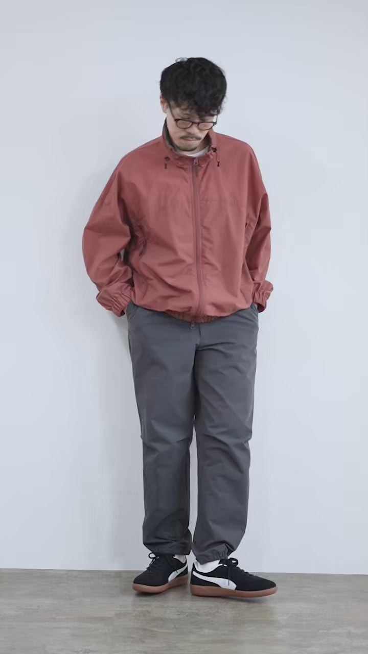 複合繊維(PE)100%のポリエステルダブルクロス生地を使用。程よい厚さで、秋の初めから着られるバランスの良い生地感です。