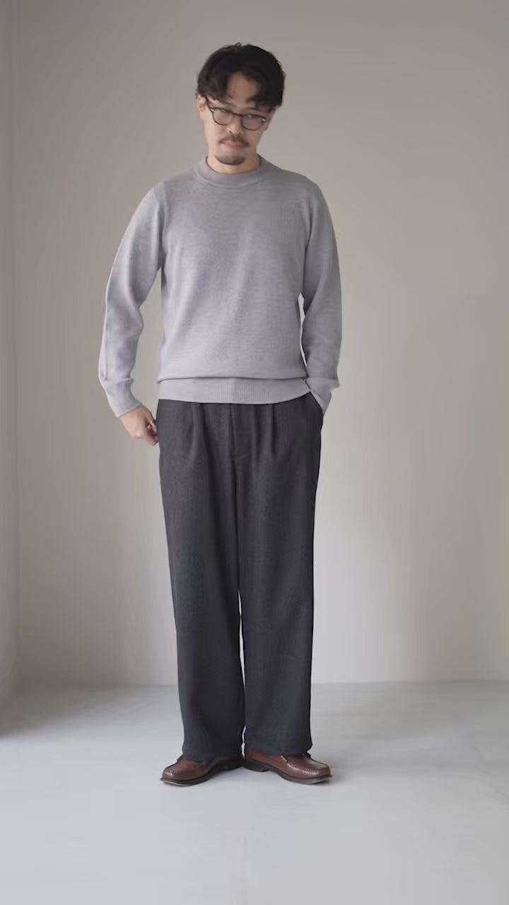 カシミヤをブレンドすることで、温もりを感じるクラフト感に、なめらかな肌触りをプラス。見た目の上質さだけでなく、穿いた瞬間に感じる柔らかさと暖かさが魅力です。