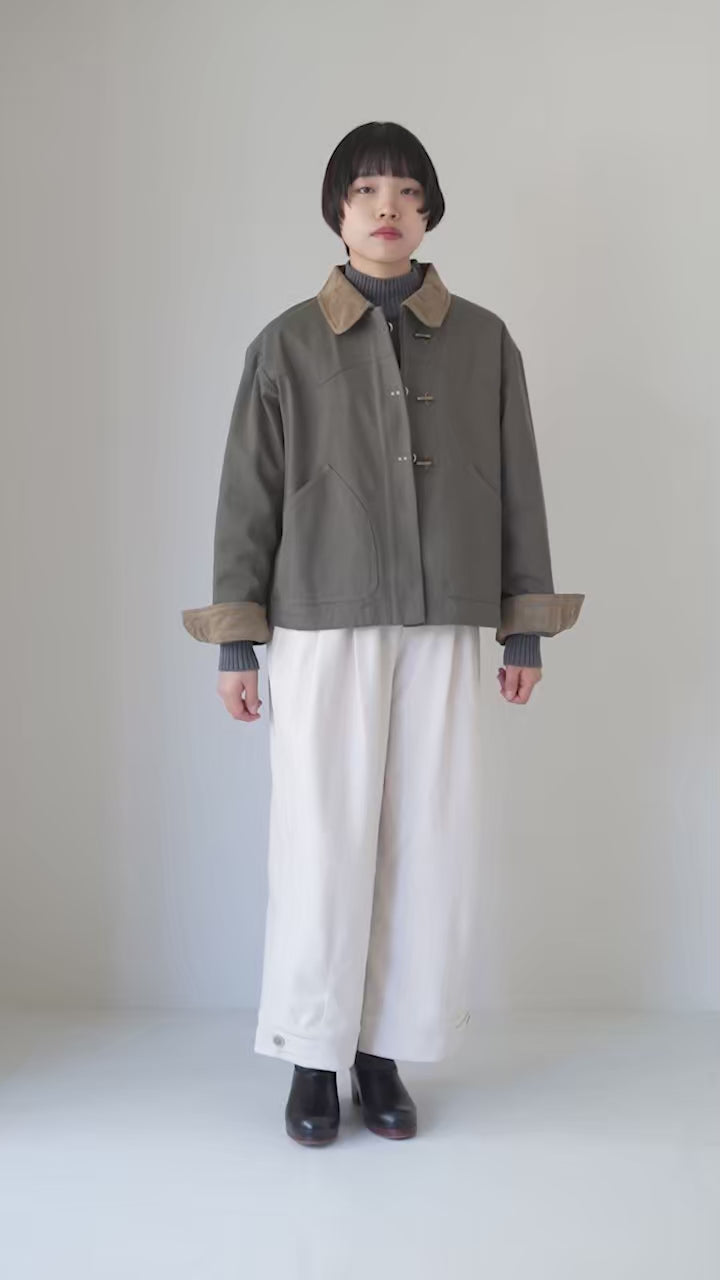 裾裏にもコーデュロイ素材が施され、前を開けて着用した際にニュアンスのある表情を演出します。
