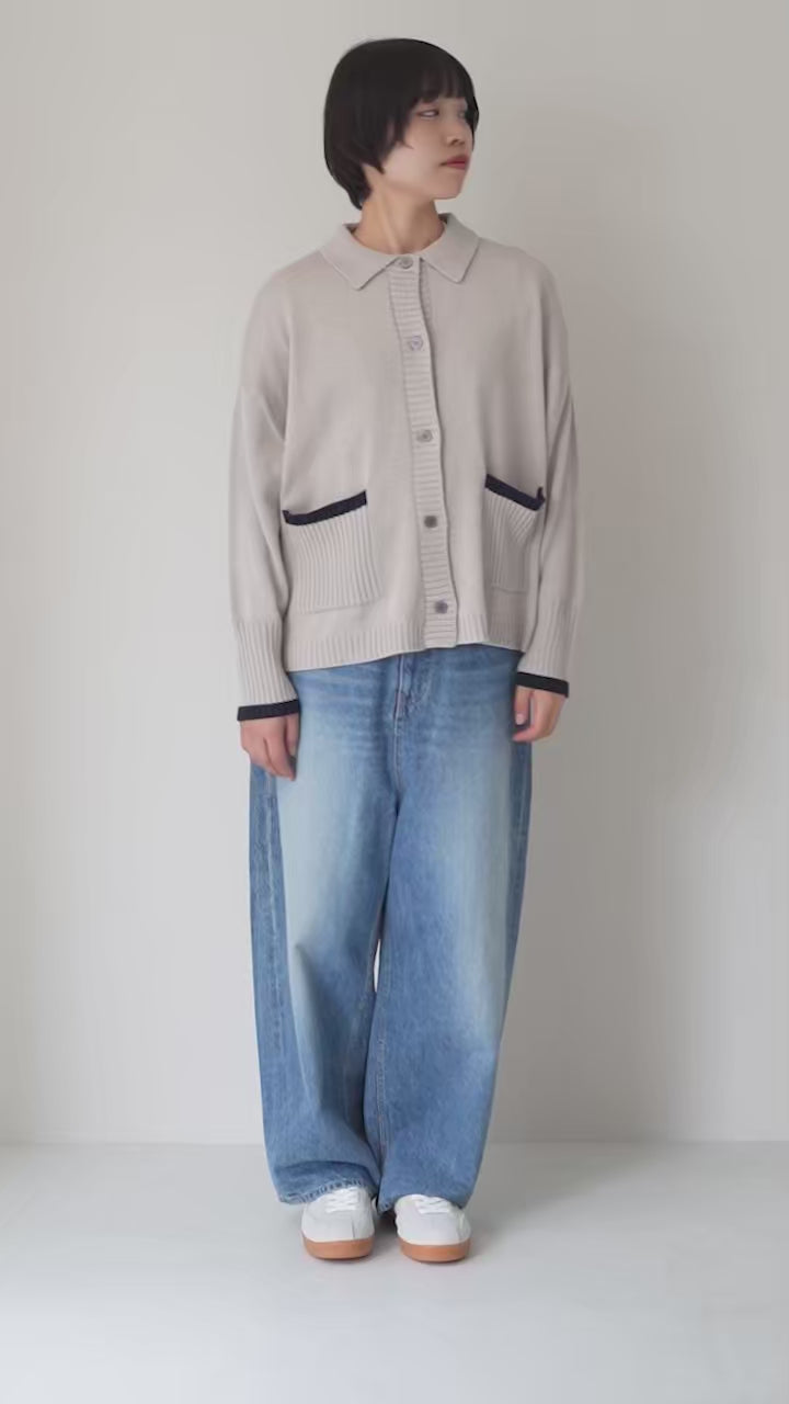 MAO MADE(マオメイド) アクリルコットン 配色ライン ポロカーディガン