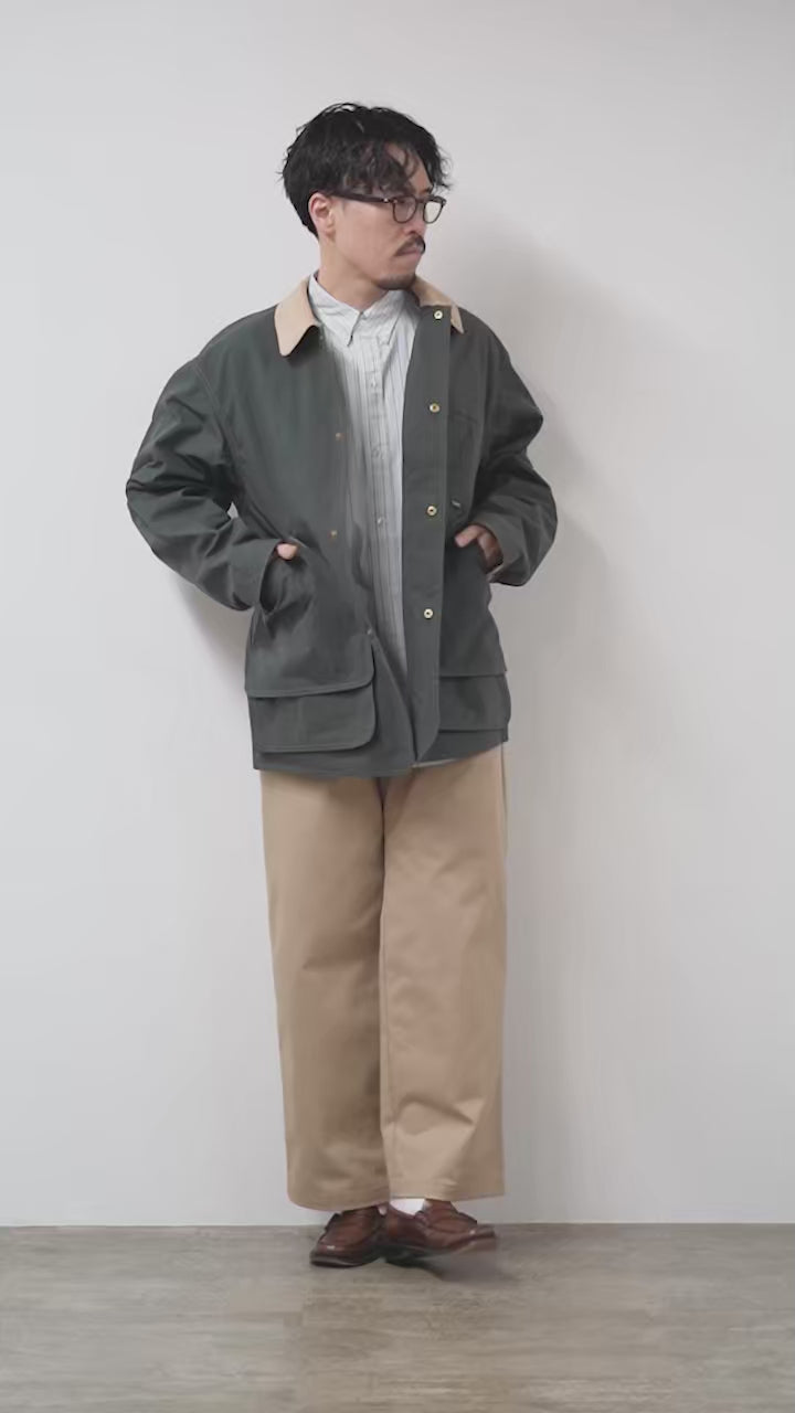 Sサイズでも肩・身幅にしっかり余裕があり、全体的にリラックスした着用感です。 着丈はヒップが隠れるくらいで、フィールドコートらしい雰囲気を楽しめます。 細身体型でも無理なく着られ、オーバーすぎないバランス感が好印象でした。