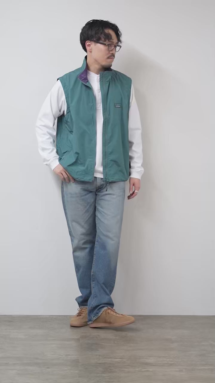 ブランド定番ジャケットをベースに、撥水仕様のベストとして再構築したモデルです。