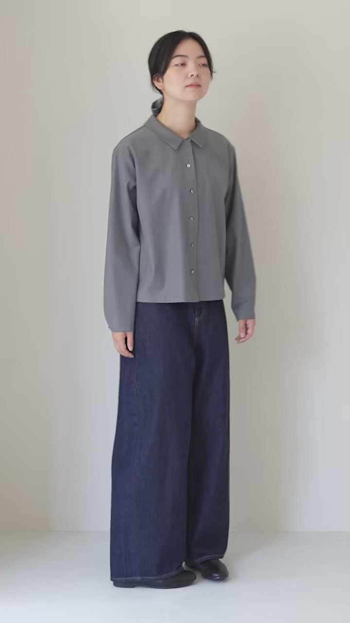 mizuiro indより、小ぶりな襟が上品さを際立たせるベーシックシャツの紹介。