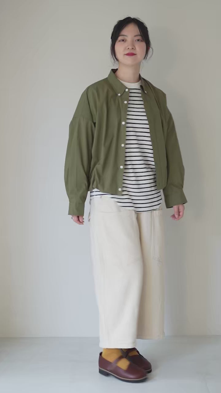 凹凸感のあるスラブヤーン糸で織り上げた表情豊かなデニム生地を使用。くったりと柔らかな質感で、長く穿きならしたようなヴィンテージ感をお楽しみいただけます。