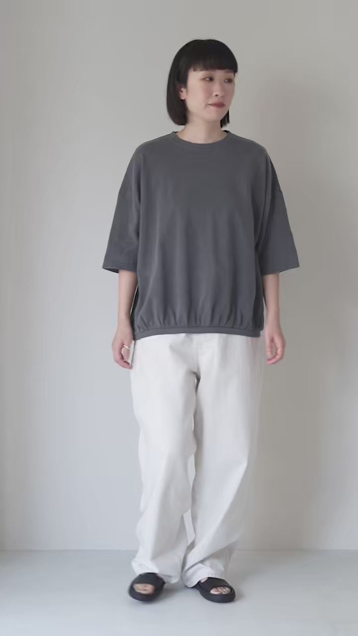 一見シンプルでありながら、計算された五分袖とゆとりのあるシルエットによって、着るだけでこなれ感を演出。気になる二の腕やお腹まわりを自然にカバーしながら、すっきり見えを叶えてくれるアイテムです。