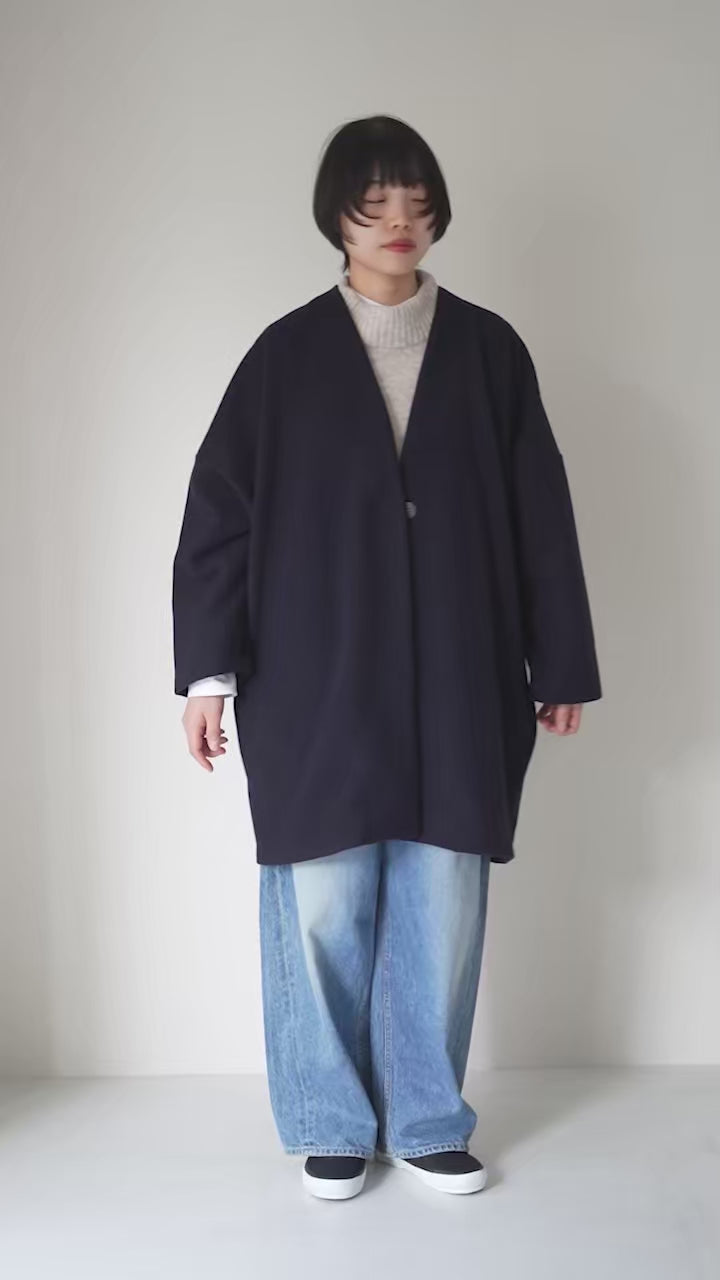 フェルトのようなふんわりとした生地にはウールを100%使用。裏地のない一枚仕立てでとても軽く、重ね着で重くなりがちな冬でもストレスフリーに着用いただけます。