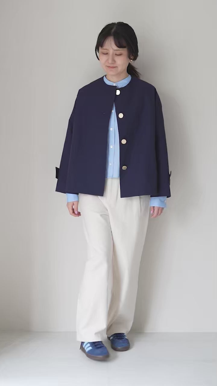 リラクシーな着心地と、スッキリとしたショート丈で春秋らしい軽やかさが感じられる一着。通勤のお供やセレモニードレスのアウターとして着映えする上品さは、普段のカジュアルコーデの格上げ役としてもお役立ちです。