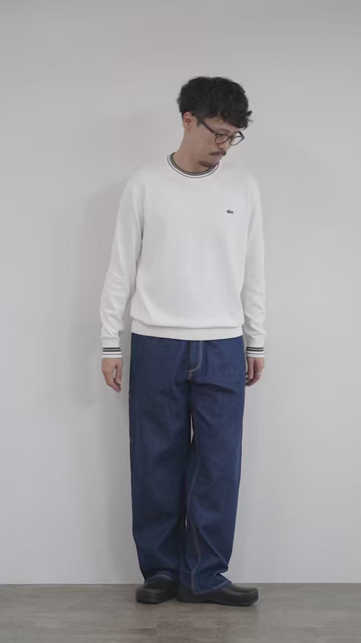 胸元にはアイコニックなクロックエンブレム(ワニの刺繍)を配し、シンプルながらブランドらしいアクセントに。カジュアルからビジネスカジュアルまで幅広いスタイルで活躍する1枚です。