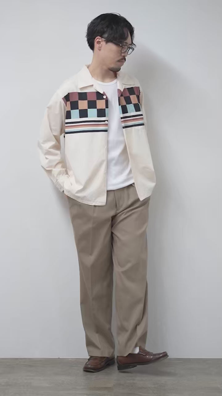 生地にはシャリ感のあるコットンブロードを使用し、春夏らしい軽さとハリのある風合いを両立。ヴィンテージのコーディロイシャツを踏襲したネイティブ柄とチェッカー柄はオリジナルで製作され、裁断時に柄を左右対称に整える丁寧な仕事が光ります。