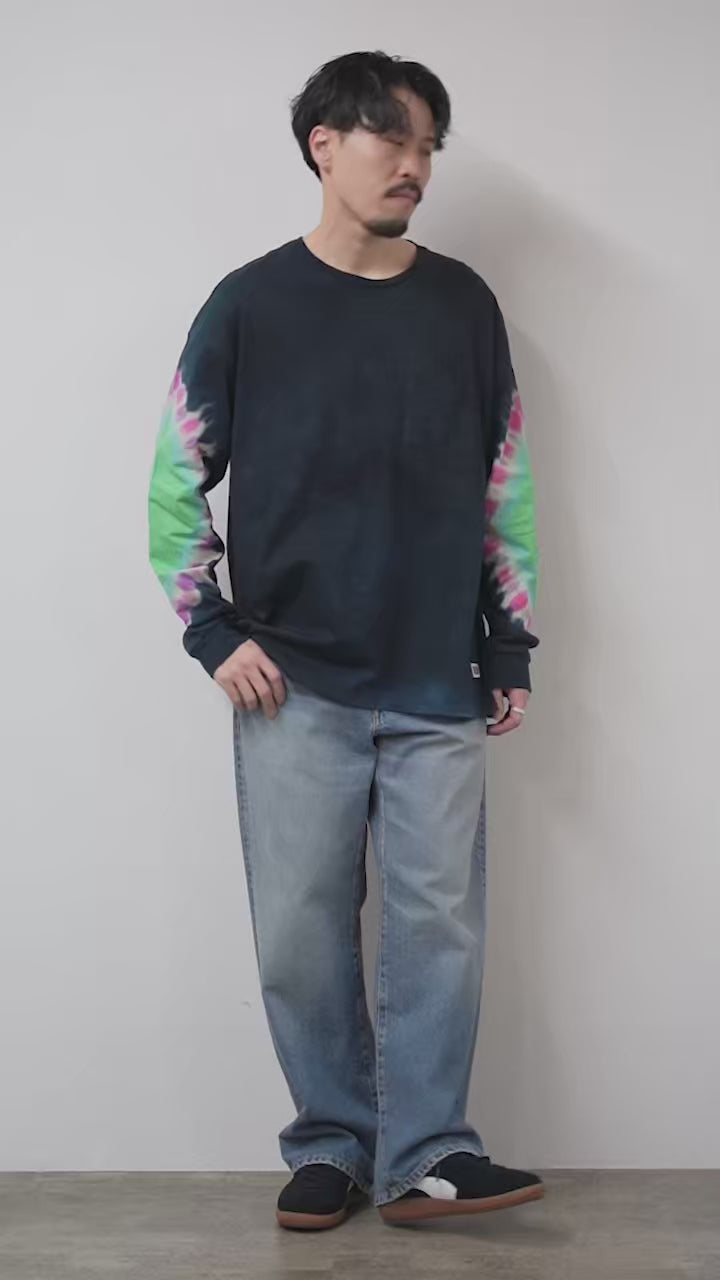 大胆なタイダイを袖に効かせながら、ボディはベーシックなバランスに設計。派手になりすぎず、日常に落とし込める仕上がりが魅力です。