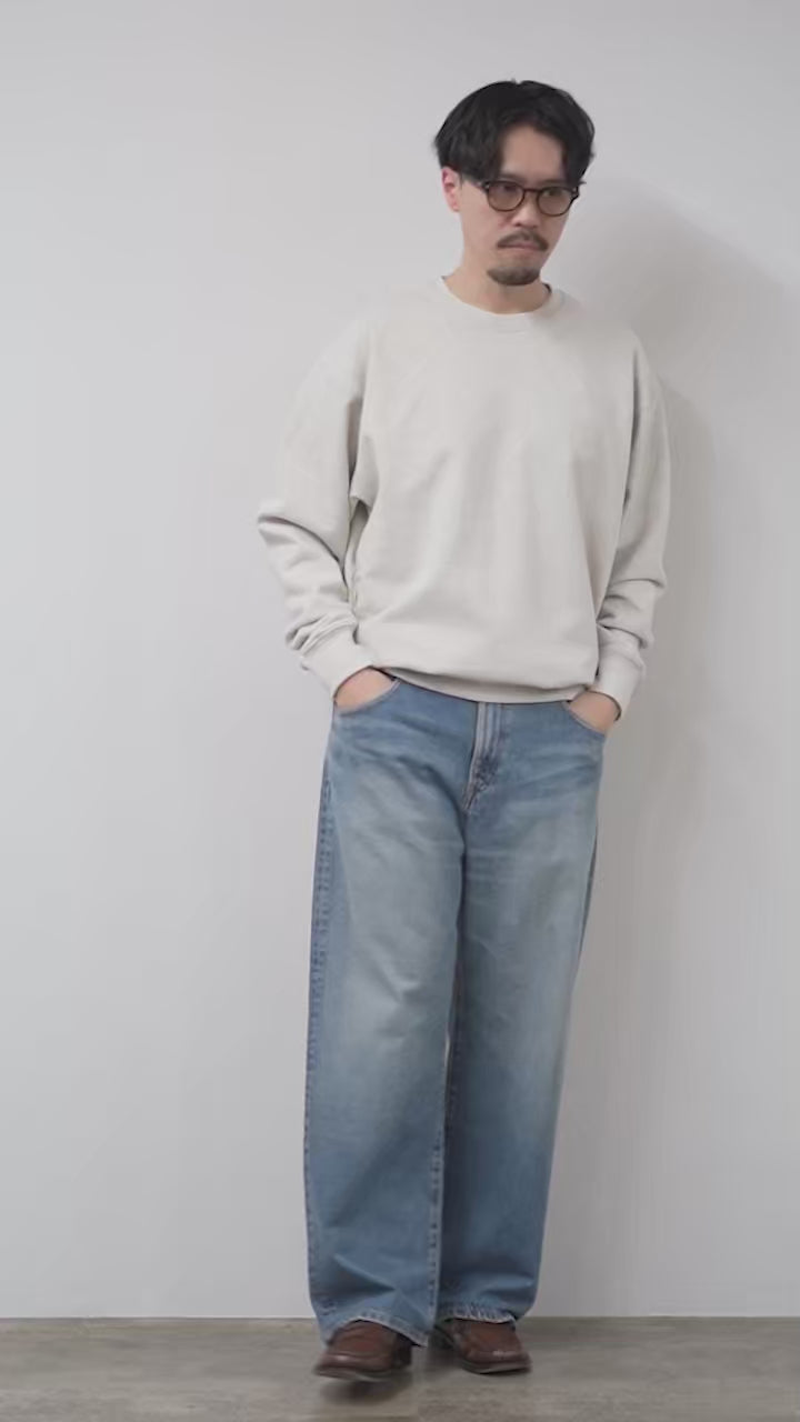 日本製の13オンスデニムを使用し、ムラ糸による自然な色の濃淡が、やりすぎない表情と奥行きを生み出しています。穿き始めから身体にすっと馴染むほどやわらかく、適度な厚みはシーズンを問わず活躍してくれます。