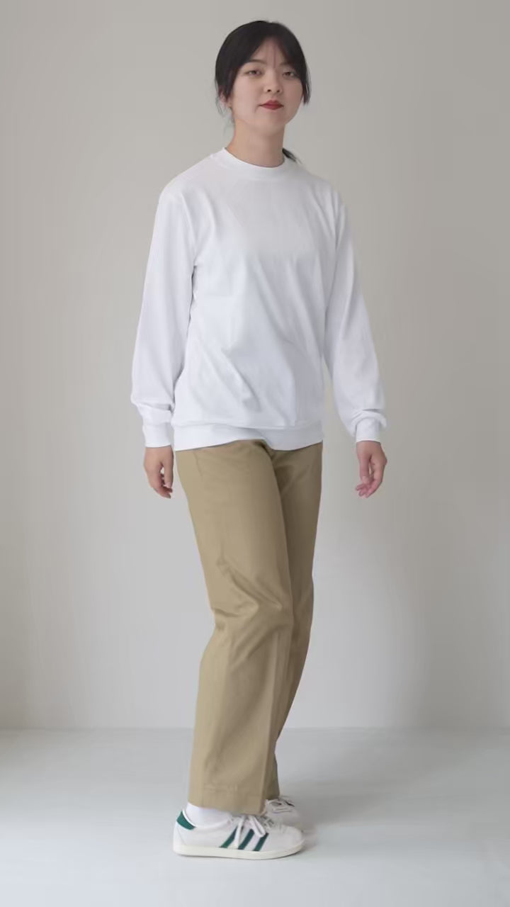 適度なゆとりを持ちながらも、ルーズになりすぎない洗練されたラインは、カジュアルにも上品なスタイルにもマッチ。大人のコーディネートに自然と溶け込む一着です。