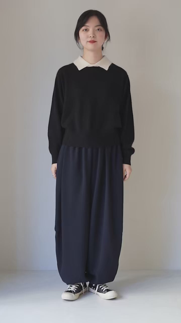 薄手でもしっとり柔らかな温もりがあり、秋の始まりから春先まで長く活躍。首元にはシャツカラーを添え、ニットの上品さにほどよい遊び心をプラスしています。