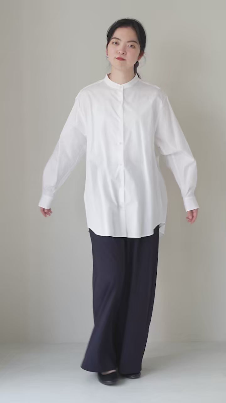 ポリエステルとレーヨンをメインに使用した生地は、手の平に吸い付くような滑らかな手触り。薄すぎず厚すぎないため、季節を問わずオールシーズン着用いただけます。