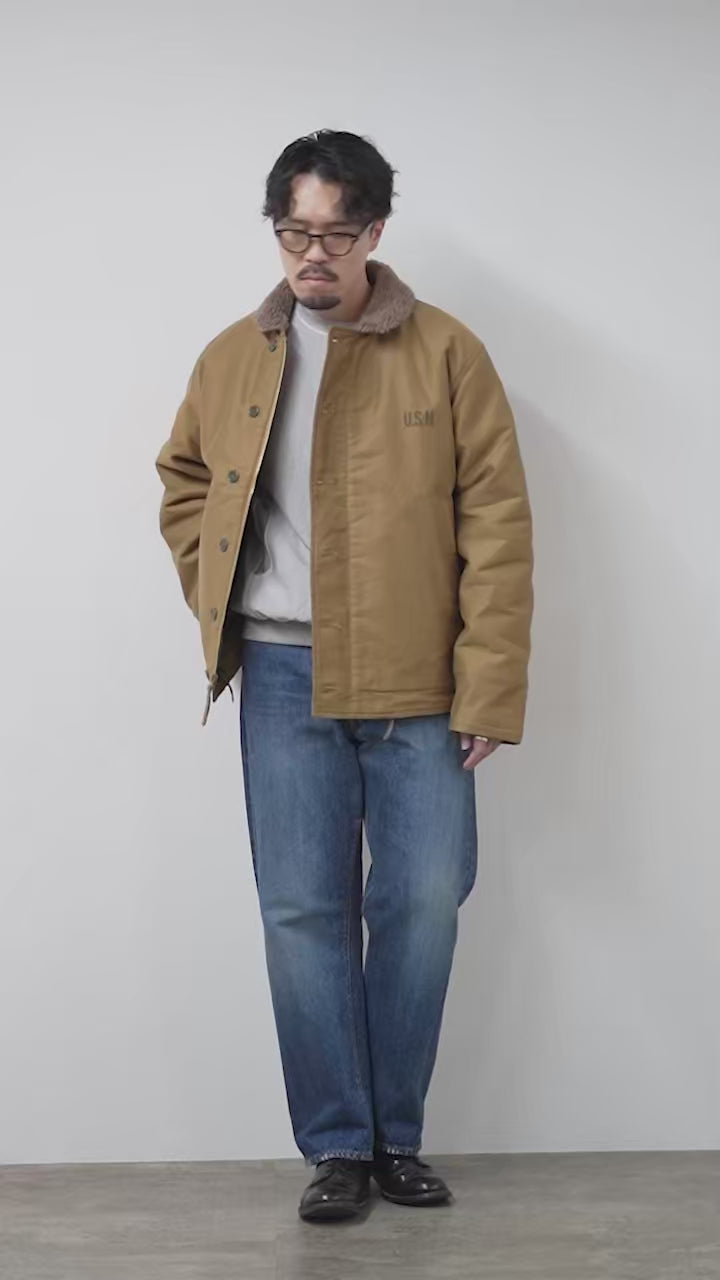 細部を削ぎ落とすことで、より量産性と実用性を高めた後期型N-1。無骨さはそのままに、完成形へと近づいた海軍アウターを、現代の街着として楽しんでほしい一着です。
