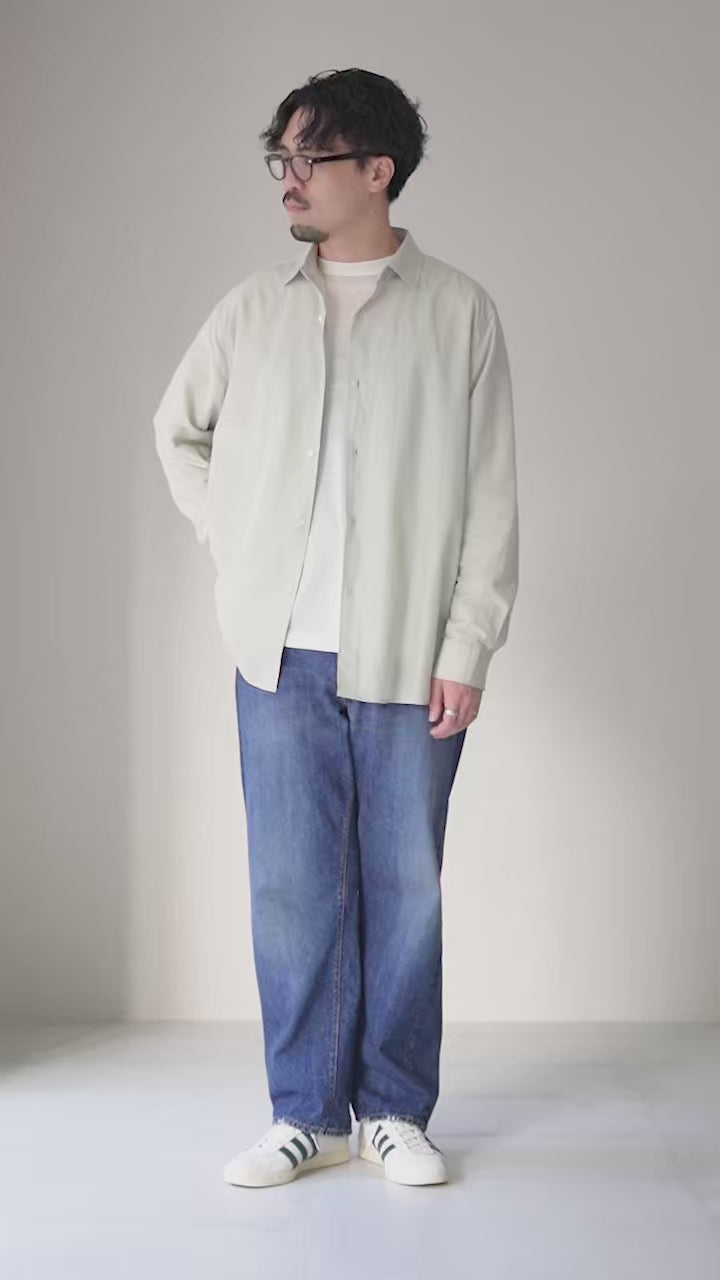 小ぶりな襟や浅めカーブのヘムラインにより、裾を出してもタックインしてもバランス良く決まり、リラックス感がありながらもスマートな印象に仕上がっています。