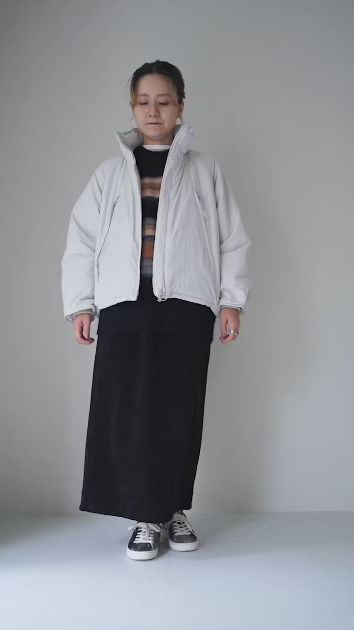 日常使用を想定し、シルエットをキープしつつ中綿量を調整することで軽く仕上げられているため、気軽に着用できる1着に。着丈は前後差をつけたフォルムで、ミニマルの中にも機能性とデザイン性を効かせた汎用性の高さも魅力です。